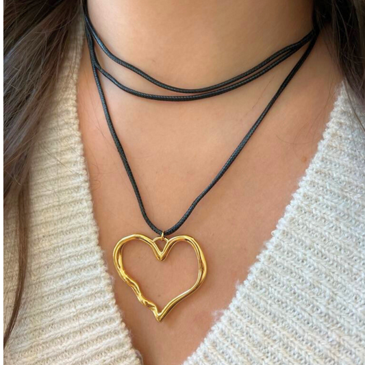 Gold Paperclip Bracelet with Gold Heart Charm with Pearls