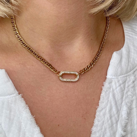 Gold Chain with Pavé Paperclip