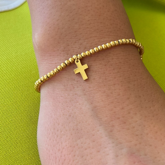 3mm Gold Bead with Gold Cross Stretch Bracelet