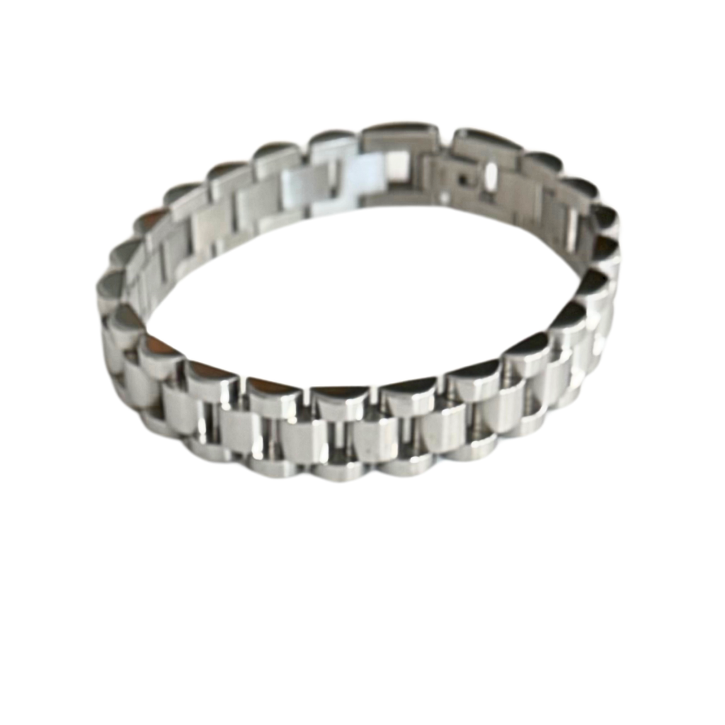 Transform your wrist with our Silver 10mm Watchband Bracelet. Made with premium stainless steel, it is water and tarnish resistant for everlasting elegance. Wear it solo for a sophisticated look or stack it with other KMK bracelets for a touch of luxury. Upgrade your style with this exclusive piece.
