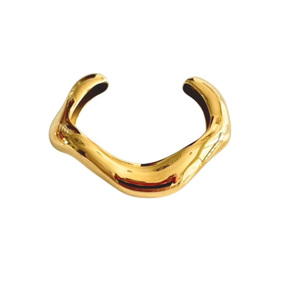 Elevate your ensemble with our Gold Wide Wave Cuff, featuring luxurious 18kt gold plating over durable stainless steel. This sophisticated bracelet offers both elegance and practicality with its water and tarnish-resistant properties, ensuring your statement piece maintains its radiant luster through daily wear.