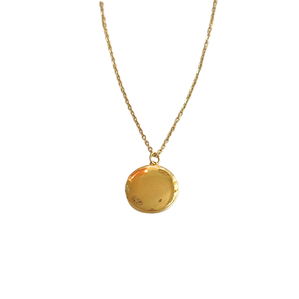 Elevate your elegance with this Small Gold Circle Locket Necklace, featuring 18kt gold plating over durable stainless steel for lasting shine. The functional locket opens to hold your cherished keepsakes close. Designed to resist water and tarnish, it maintains its refined look through everyday wear. A timeless piece that blends sophistication with meaningful wearability.